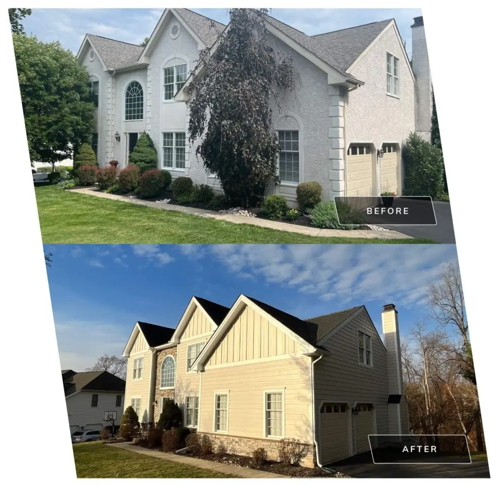 When the homeowners of this early 2000s colonial-style home in Norristown, PA, reached out to Porter Family Exteriors, they were at a crossroads. Their loving home was overshadowed by a persistent problem—failing stucco that not only detracted from its curb appeal but also posed risks of further damage. They needed a solution they could trust, and that’s where our team came in.