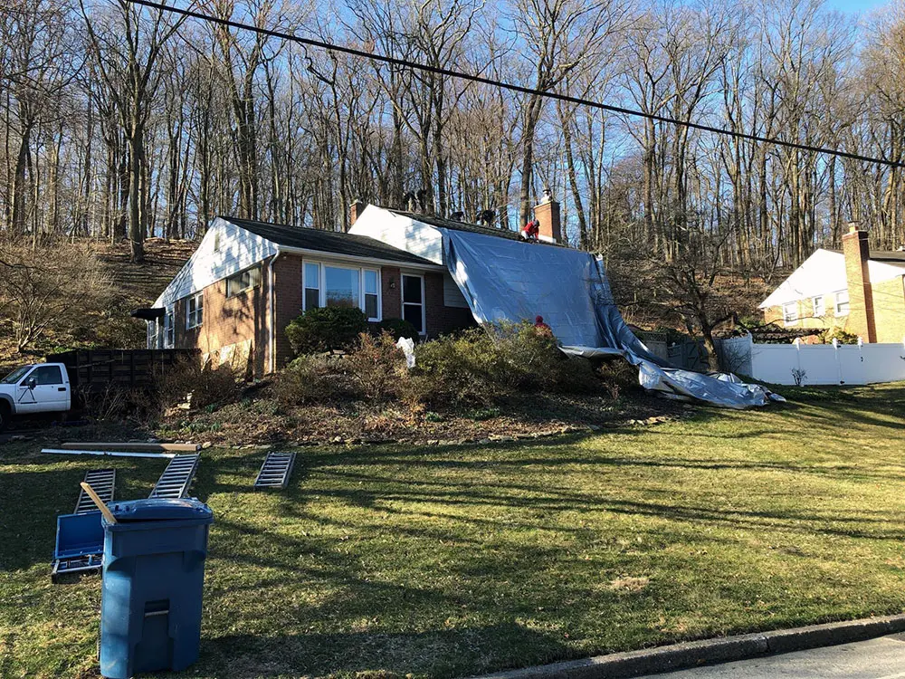This homeowner in Wayne needed some work done on their roof. We built a complete new roof for their low-slope structure. We were sure to also install synthetic tiger paw underlay, a base, counters, step flashing, a ridge vent, and a hip and ridge cap. All these things help safeguard openings in the roof, sealing out moisture and preventing damage. While we were there, we also replaced their old wooden decking.