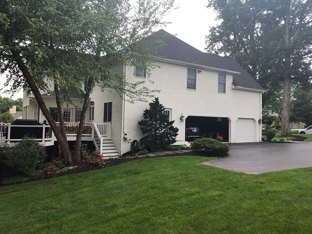 We usually recommend our clients to replace their stucco with James Hardie fiber cement siding, which has many benefits over other claddings. This client, located in West Chester, opted for James Hardie siding in the color Arctic White. While we were at their house, we also installed a new roof, a new entry door, a new patio side door, and put in new windows, gutters, downspouts, and gutter guard.