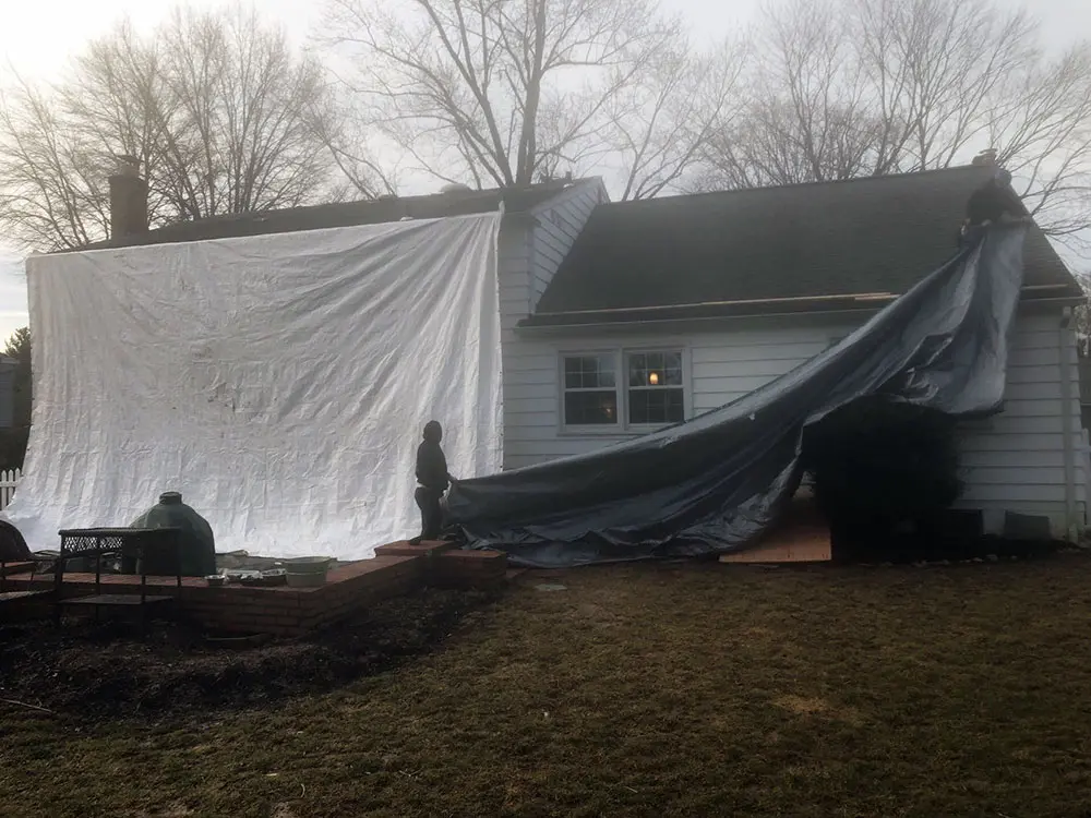 At every job site, we’re always sure to hang up protective cloths and boards before we begin removing shingles. After we’re finished working, we use a powerful magnet to ensure that every last stray nail is picked up.