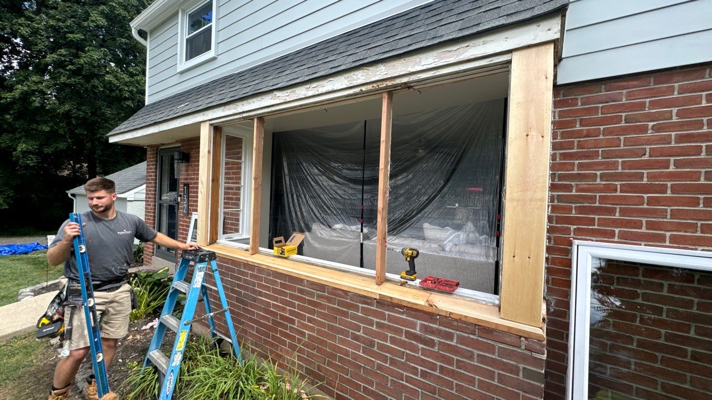 We adjusted scheduling to accommodate driveway deliveries and paused briefly for inclement weather. During work on the front triple window, we uncovered rot beneath the old metal capping. Our team installed temporary protection and returned promptly to complete permanent repairs, ensuring the home stayed watertight..